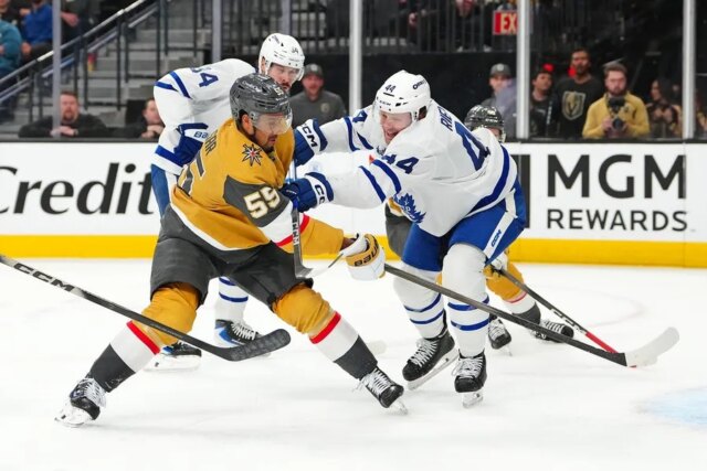 Mitch Marner, que ouviu muitas vaias dos torcedores do Maple Leafs que vieram de Toronto, teve duas assistências em seu primeiro jogo contra seu ex-time desde que foi para os Golden Knights em um acordo de assinatura e troca pelo pivô Nicolas Roy em 1º de julho.