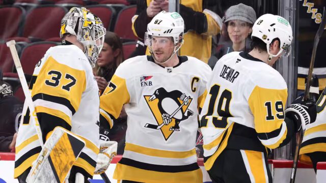 Bryan Rust abriu a marca em um passe do célebre número 87 e Yegor Chinakhov foi inscrito como primeiro-ministro, mas no uniforme dos Pinguins.
