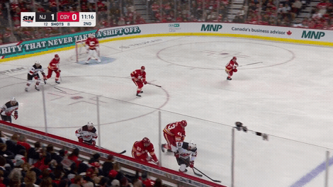 O jogador de 22 anos pareceu ter sofrido a lesão enquanto perseguia o disco para fora do Flames, quando o atacante do Calgary, Justin Kirkland, puxou sua camisa, fazendo com que Hughes sentisse dores e fosse direto para o banco.