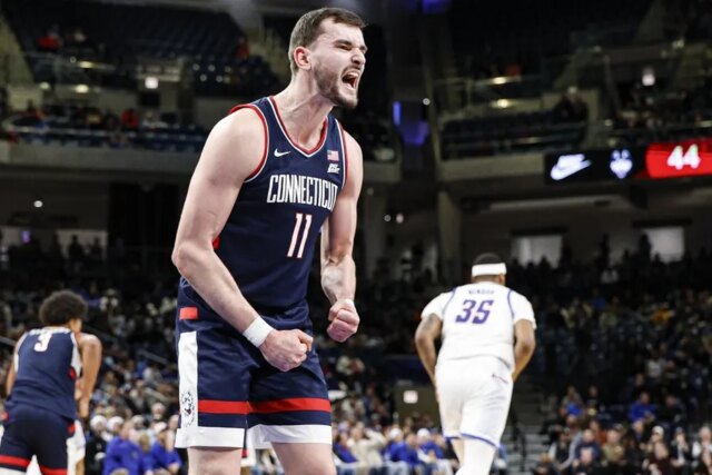 “Somos um programa de campeonato”, disse o atacante Alex Karaban após seu desempenho de 23 pontos contra os Frades. “Nunca vamos recuar, não importa quais sejam as circunstâncias. Vamos continuar pressionando por 40, 45 minutos, seja lá o que for.”