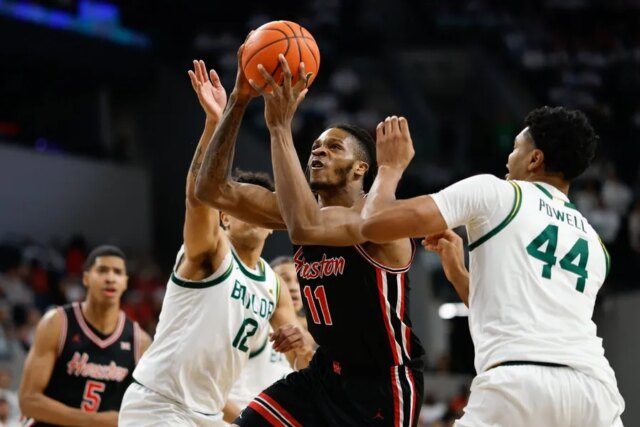 Joseph Tugler somou 12 pontos e 11 rebotes para os Cougars, enquanto Isiah Harwell também fez 12 pontos, Chris Cenac Jr. rebateu 11 e Kingston Flemings arremessou 10 pontos. Houston manteve o Bears com 36,6% de arremessos do chão e forçou 16 viradas que se transformaram em impressionantes 31 pontos.