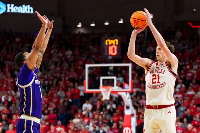 Pryce Sandfort lidera Nebraska com 17 ppg em 48,5% de arremessos, incluindo 41,8% na faixa de 3 pontos. Rienk Mast é o próximo com 14,9.