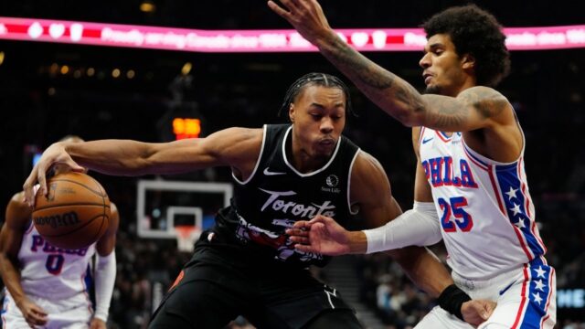 RJ Barrett (entorse no tornozelo esquerdo) de Mississauga, Ontário, e Jakob Poeltl (dor na parte inferior das costas) estavam ambos fora da escalação dos Raptors.