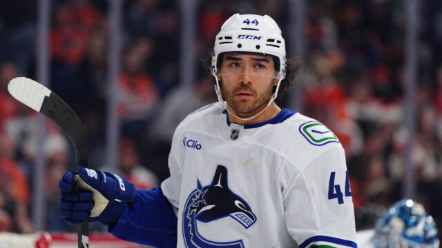VANCOUVER – É fácil torcer pela reconstrução do Vancouver Canucks quando eles perdem por 6 a 0, como fizeram no sábado em casa contra o Edmonton Oilers. É mais difícil quando eles trocam Kiefer Sherwood por algumas escolhas de draft que podem ou não produzir um jogador da Nationwide Hockey League daqui a três ou quatro anos.