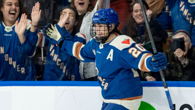 Sarah Nurse marcou duas vezes e Tereza Vanisova marcou um gol e uma assistência na vitória do Vancouver Goldeneyes sobre o Toronto Sceptres por 5 a 0 na noite de quinta-feira, em sua primeira vitória em casa na PWHL em 2026.