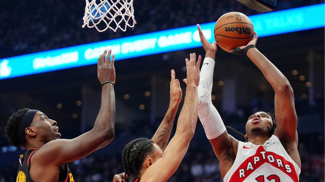 Scottie Barnes fez um duplo-duplo com 18 pontos, 10 assistências e oito rebotes na vitória dos Raptors sobre os Hawks pelo segundo jogo consecutivo.