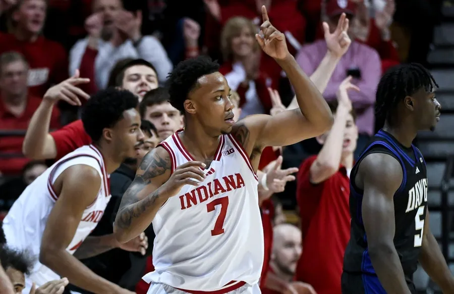 Os Hoosiers ampliaram sua vantagem para 52-38 em um pull-up jumper de Tucker DeVries do topo da chave em um contra-ataque faltando 1:42 para o fim do intervalo.