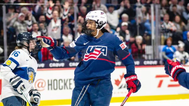 Edwards evoluiu desde quatro anos com a Universidade de Wisconsin. Ela se destacou novamente nesta temporada com 33 pontos em 19 partidas, depois da campanha 2024-2025 com 35 gols e 71 pontos. Ela representou os Estados Unidos dos Campeões do Mundo de 2024 e 2025, relatando a edição mais recente do torneio.