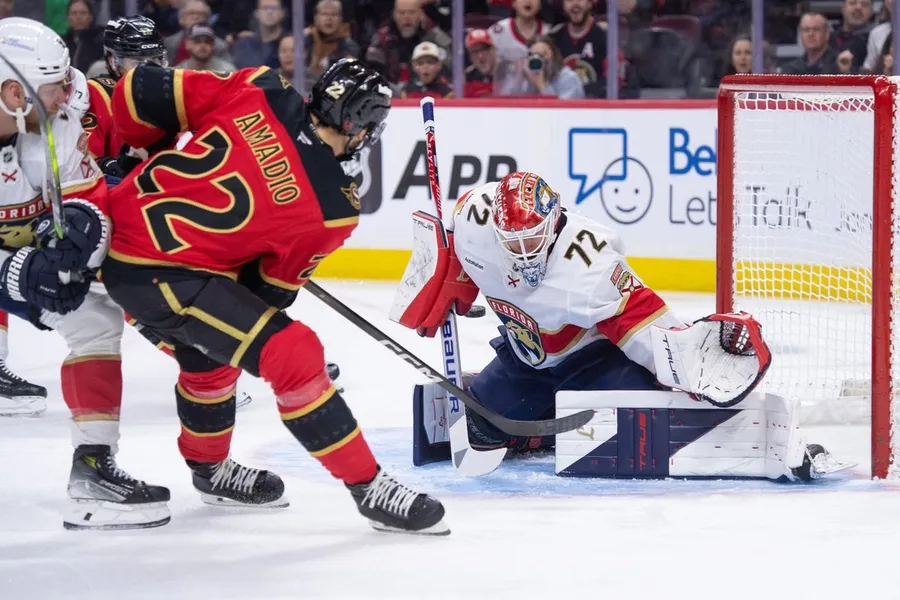 Sergei Bobrovsky parou 17 dos 19 arremessos que enfrentou para ajudar os Panteras a obter uma vitória fora de casa por 3 a 2 sobre os vacilantes Ottawa Senators no sábado.