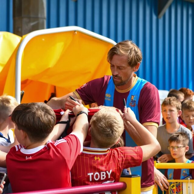 Aplaudido pelo colega Aquele podcast de Peter Crouch os co-anfitriões Chris Stark e Steve Sidwell, o ex-atacante do Liverpool e Spurs de 1,80 metro, ficaram totalmente presos. Ele participou de um desafio no intervalo, marcou um gol e iniciou sua famosa celebração do robô para o deleite dos fãs.