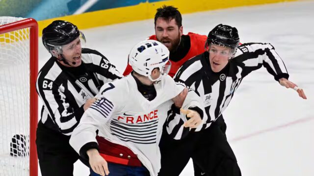 «Le comportement provocant de Pierre Crinon à sa sortie de la glace, alors même qu’il venait de se faire exclure de la rencontre pour une bagarre, constitue une viola manifeste de l’esprit olympique et porte également atteinte aux valeurs de notre sport», uma indicação da Fédération française de hockey (FFHG).