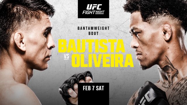 Os pesos galo Mario Bautista e Vinicius Oliveira são as atrações principais do primeiro card do ano do UFC Struggle Evening, no Meta Apex, em Las Vegas. Assista à ação no sábado, 7 de fevereiro, no Sportsnet 360 e Sportsnet + com cobertura começando às 18h ET/15h PT.