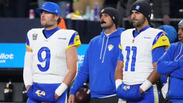 Os Rams não dizem nada publicamente, mas a organização está otimista com o retorno de Stafford para uma 18ª temporada da NFL, provavelmente com mais um contrato reformulado. O quarterback que completa 38 anos no próximo mês simplesmente não parece ir embora depois de se tornar um dos principais candidatos ao seu primeiro prêmio de MVP enquanto lidera a liga com 4.707 jardas em passes e 46 TDs.