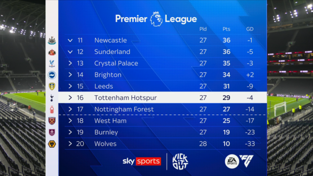 Os Spurs não venceram na primeira divisão em 2026, faltando 11 jogos para o ultimate da campanha da Premier League.
