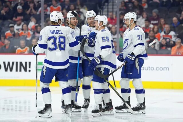 Foi uma viagem bem-sucedida à Cidade do Amor Fraterno para o Relâmpago, que obteve uma vitória por 7 a 2 na Filadélfia no sábado, antes de alcançar outra vitória confortável. Em um time repleto de estrelas, a atração principal continua sendo Kucherov, que estendeu sua seqüência de pontos para 10 jogos com uma assistência no segundo período, antes de marcar um gol sem gol no terceiro.