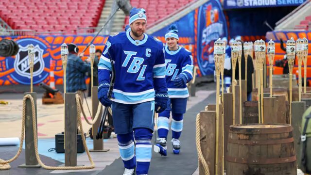 Tudo está pronto para a partida ao ar livre que oporá à noite dos Bruins de Boston no Lightning de Tampa Bay antes de uma falta imponente no Raymond James Stadium e o evento marcou o retorno de uma figura connue de «Bolts».