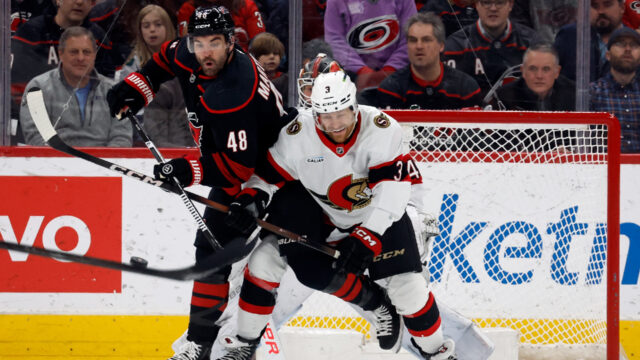 Seth Jarvis marcou duas vezes no segundo período pelos Hurricanes, enquanto Sebastian Aho marcou o primeiro gol do Carolina no ultimate do primeiro. Brandon Bussi fez 22 defesas para os Hurricanes, incluindo uma grande ao mergulhar para a esquerda para negar Jake Sanderson, com Ottawa fazendo 6 a 5 no ultimate, após puxar Reimer na tentativa de empatar.