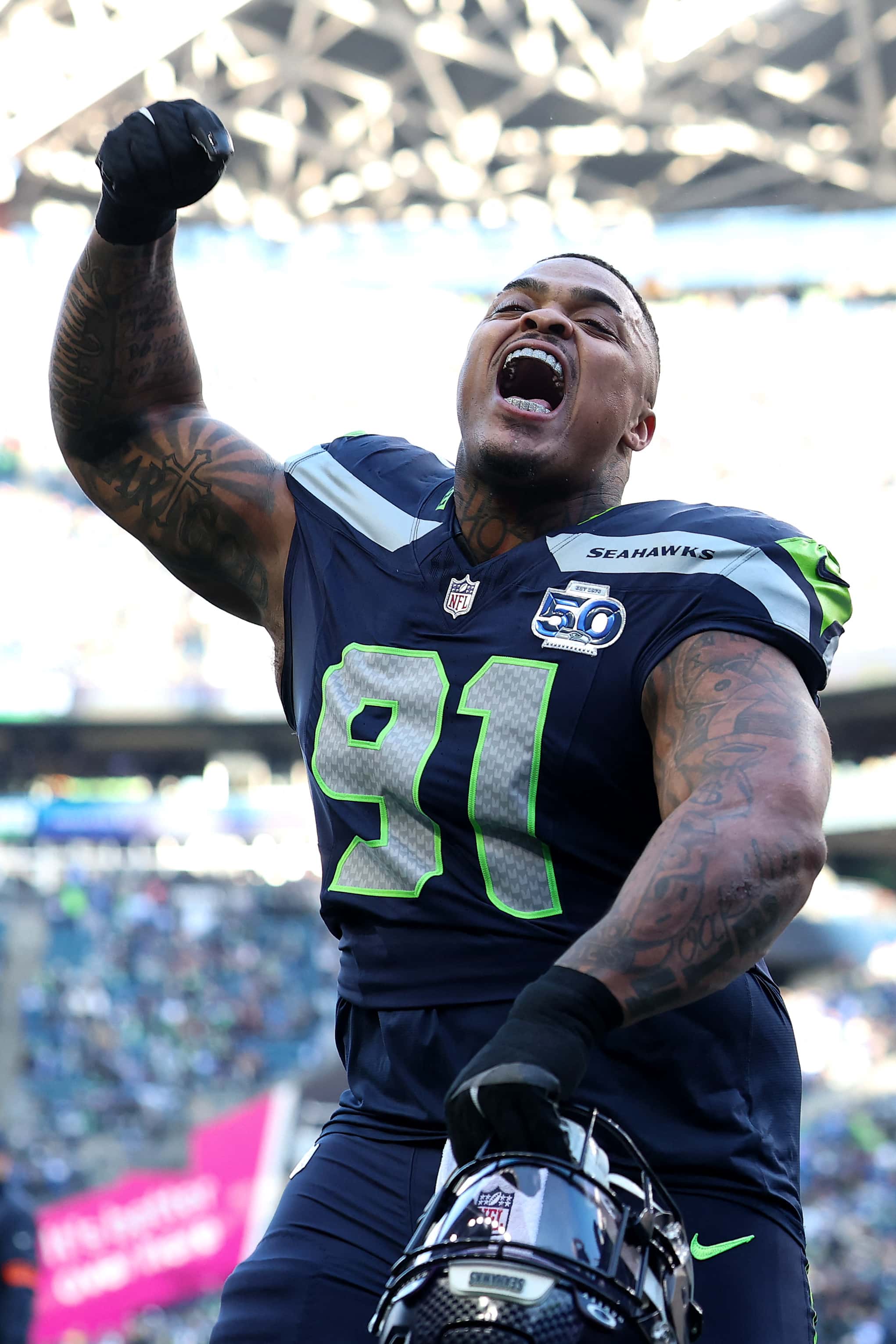 O jogador de defesa dos Seahawks, DeMarcus Lawrence, completou dois sacs du quart em eliminatórias e seis esta temporada. Ele deve ter um caso com Will Campbell, bloqueando o recrutamento que conquistou quatro sacs e três partidas eliminatórias. O quarto traseiro de Drake Maye foi vítima de menos quatro sacos em algumas partidas eliminatórias. Campbell e a linha ofensiva dos Patriots devem ser absolvidos.