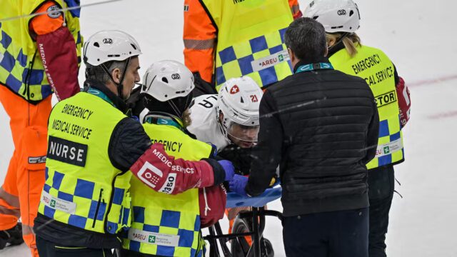 O atacante dos Reis de Los Angeles Kevin Fiala, que representa a Suíça, que abandonou o patinoire em uma cidade no last do período de troisième. Aux dires de filho entraîneur-chef Patrick Fischer, il a pris le chemin de l’hôpital.