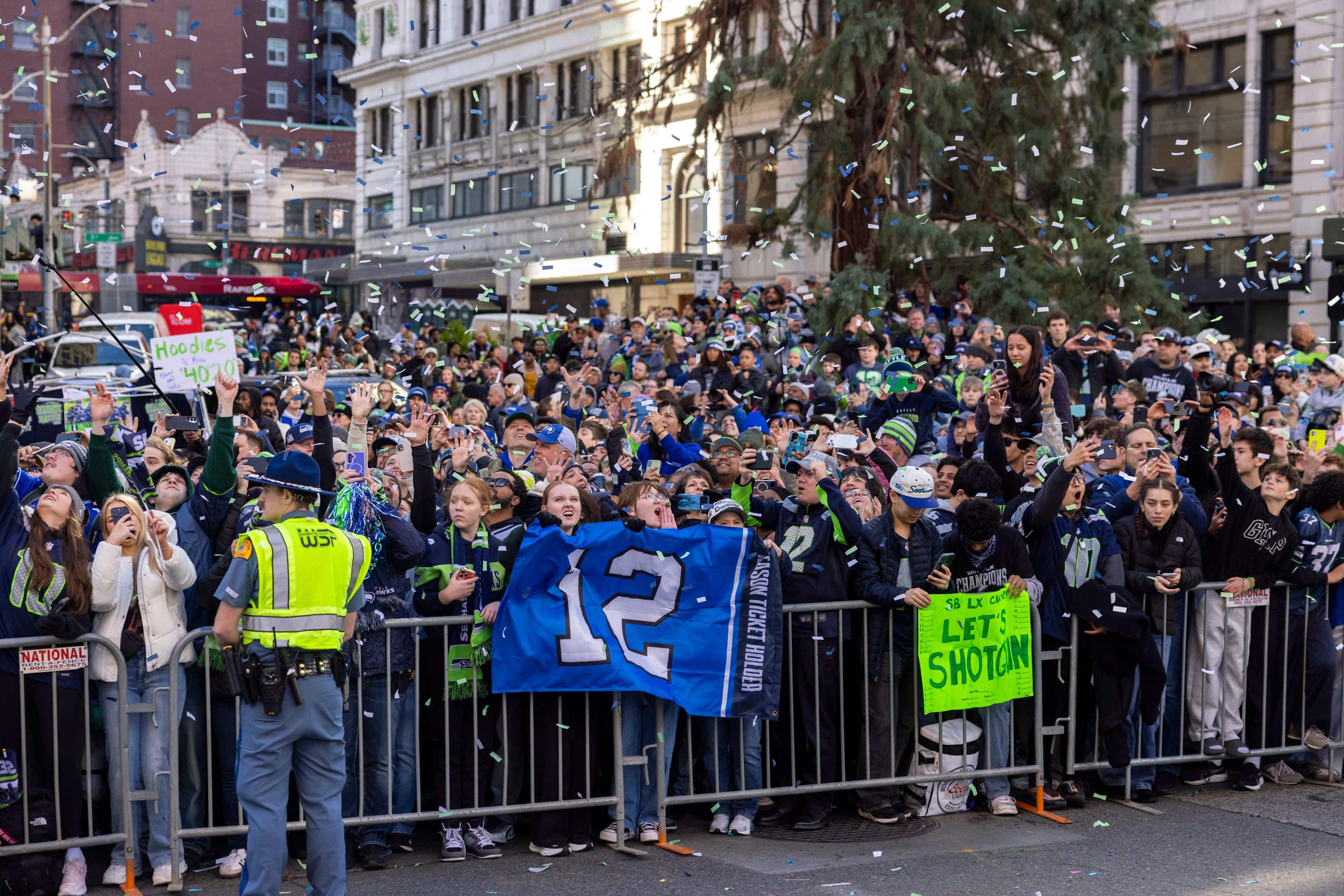 Começou o dia de festa nas ruas de Seattle, onde os jogadores, os participantes e os membros da organização Seahawks foram eliminados após a celebração de sua vitória no Tremendous Bowl LX.