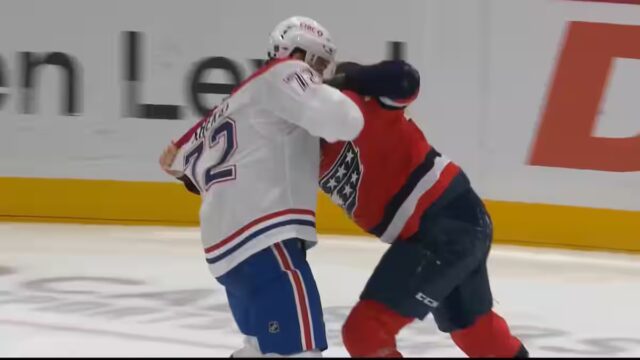 O defensor do Canadá de Montreal, Arber Xhekaj, jogou os policiais, no dia da noite, em um longo combate na retaguarda das capitais de Washington, Dylan McIlrath.