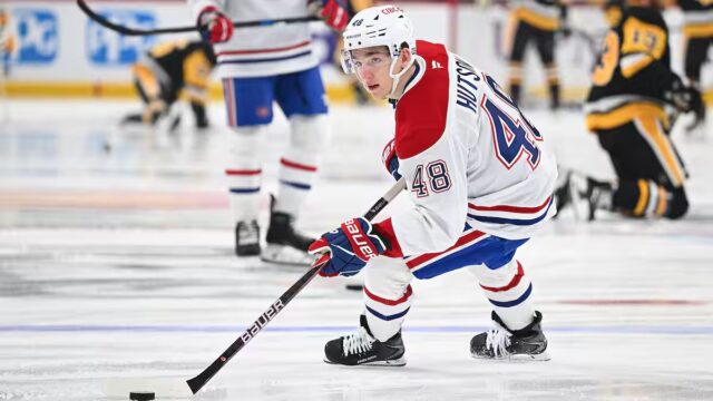 Tendo sido muito solicitado por Martin St-Louis, Hutson também pegou as bouchées duplas durante a ausência de cortesia de Mike Matheson.