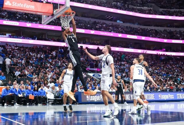 Victor Wembanyama dominou com 29 pontos, 11 rebotes, seis assistências e três bloqueios para levar o visitante San Antonio Spurs à vitória sobre o Mavericks por 135-123 na quinta-feira em Dallas.