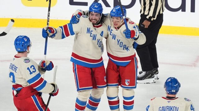 Mika Zibanejad fez três gols, o primeiro na história do Winter Traditional, e Artemi Panarin marcou os outros dois gols do New York.