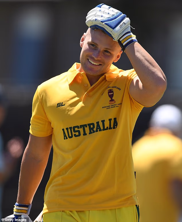 Jackson Warne (foto) mengenakan pakaian kriket kuning yang ikonik pada hari Selasa untuk berkompetisi dalam pertandingan Backyard Cricket Series antara Australia dan Inggris di Shane Warne Oval di Melbourne