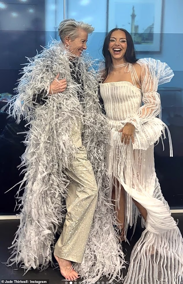 Melalui Instagram pada hari Selasa, Jade membagikan serangkaian foto dari waktunya di Graham Norton Show, termasuk beberapa foto manis di belakang panggung bersama Emma.