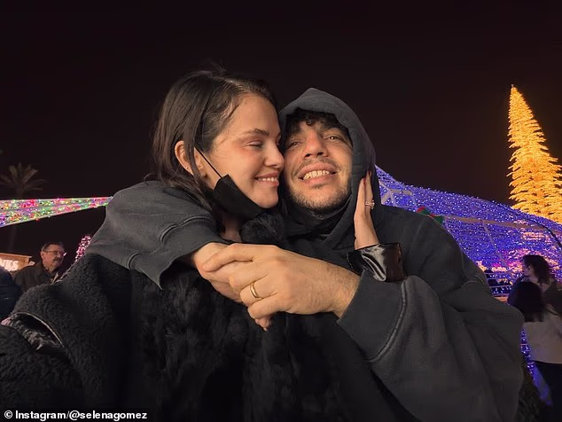 Salah satu gambar yang sangat intim menunjukkan Gomez memberikan ciuman ke dahi Blanco saat dia tersenyum dengan mata tertutup, pasangan itu saling berpelukan di tengah cahaya hangat ribuan lampu.