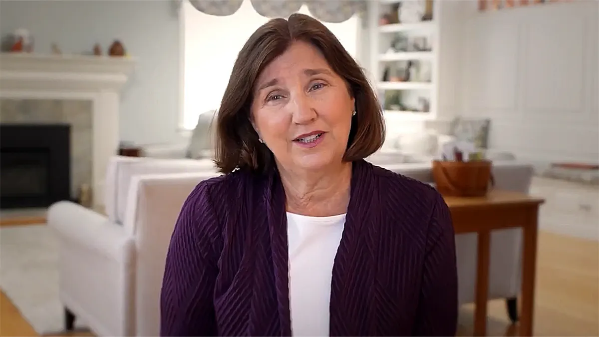 A ex-conselheira executiva Cinde Warmington, de New Hampshire, vista em um vídeo de campanha, lança sua segunda candidatura consecutiva para governador do importante estado indeciso do norte da Nova Inglaterra. (Cinde Warmington para governador)