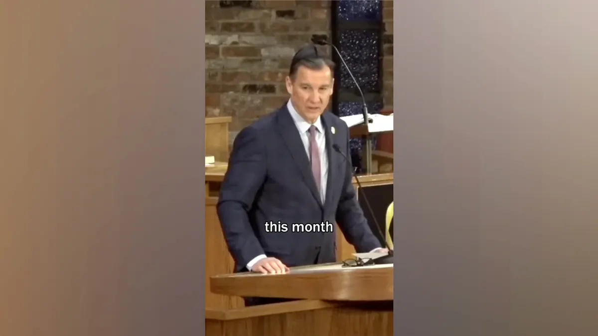 O comediante e ativista Walter Masterson pareceu ter sido expulso do templo durante a interrupção, enquanto tentava ler em voz alta os nomes de pessoas que ele disse terem morrido em incidentes relacionados ao ICE. (Desafio climático through Storyful)