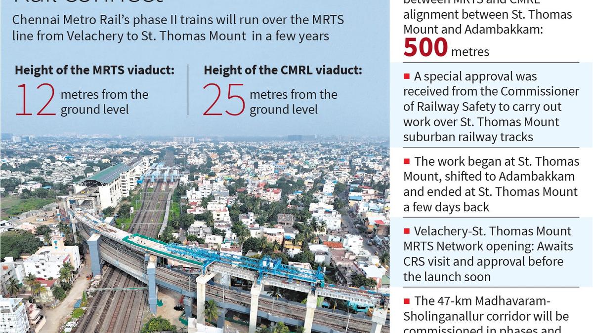 Em poucos anos, com os trens suburbanos serpenteando pelo nível do solo e Velachery-St. Rede Thomas Mount MRTS no primeiro, os trens de fase II do Chennai Metro Rail de Madhavaram a Sholinganallur funcionarão no segundo nível.