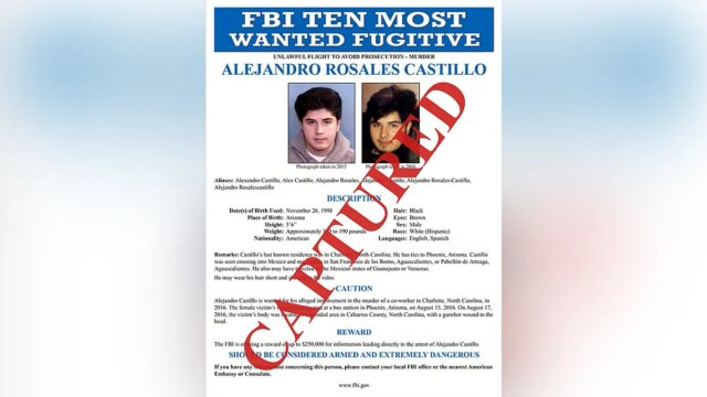 O FBI anunciou no sábado que prendeu Alejandro Rosales Castillo, que é um dos dez fugitivos mais procurados desde 2017.