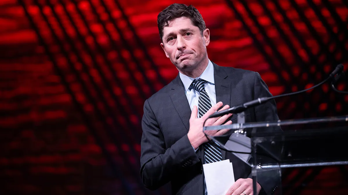 O prefeito de Minneapolis, Jacob Frey, se afasta do pódio depois de falar na 94ª Reunião de Inverno da Conferência de Prefeitos dos EUA, quinta-feira, 29 de janeiro de 2026, em Washington. (Kevin Wolf/Foto AP)