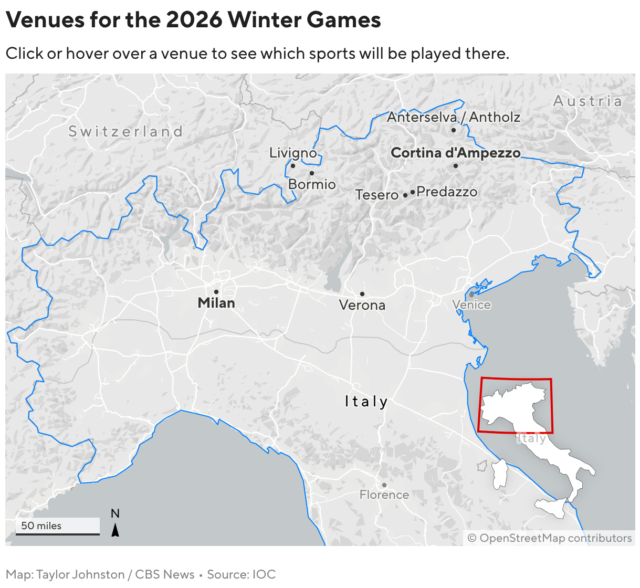 As duas cidades-sede significam que ela se tornará a Jogos mais difundidos na história olímpicade acordo com o Comitê Olímpico Internacional, abrangendo quase 8.500 milhas quadradas do norte da Itália.