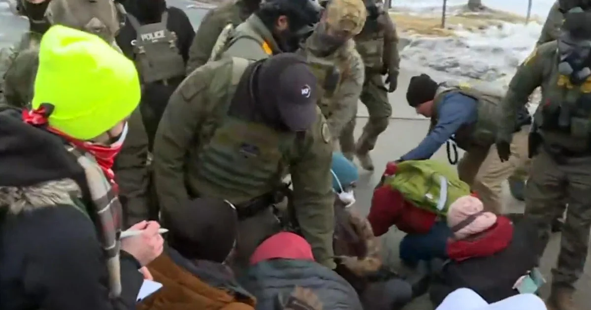 Centenas de manifestantes protestaram na quinta-feira em frente a um prédio federal em Minneapolis, onde o ICE está sediado. Assim que os manifestantes chegaram ao limite da propriedade, uma fila de agentes federais começou a se formar e, em poucos minutos, os policiais tentaram empurrá-los para trás, espalhando bolas de pimenta no chão e depois na multidão.