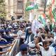 Um grande número de manifestantes, incluindo mulheres e idosos, participaram na marcha e levantaram slogans contra o Centro e a Comissão Eleitoral da Índia (ECI).