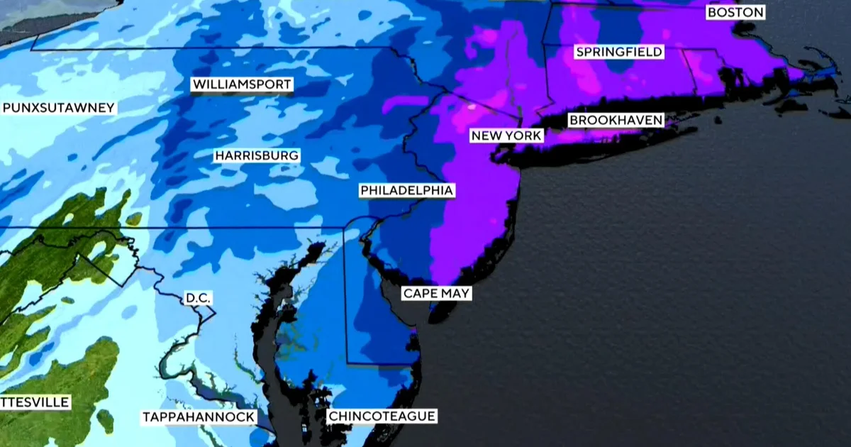 A cidade de Nova York está carregando mais de 700 espalhadores de sal e transformando mais de 2.000 caminhões de lixo em limpa-neves para a tempestade de neve que deve começar a cair na manhã de domingo. Mais de 30 milhões de pessoas na Costa Leste estão sob avisos de nevasca. Ali Bauman relata e Andrew Kozak tem a previsão.