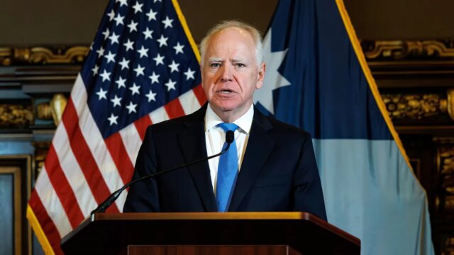 O governador de Minnesota, Tim Walz, dá uma entrevista coletiva no Capitólio do Estado de Minnesota, em St. Paul, Minnesota, em 5 de janeiro de 2026. (Rádio Pública Kerem Yücel/Minnesota through AP)