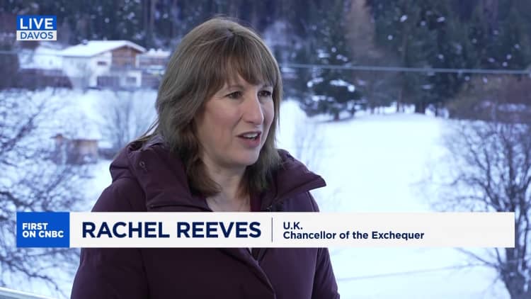 Rachel Reeves, Ministra das Finanças do Reino Unido, falando no Squawk Field da CNBC fora do Fórum Econômico Mundial em Davos, Suíça, em 22 de janeiro de 2025.
