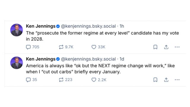 Jennings acessou a plataforma liberal de mídia social Bluesky na quarta-feira, durante um ciclo de notícias dominado pelo tiroteio envolvendo o ICE em Minneapolis.