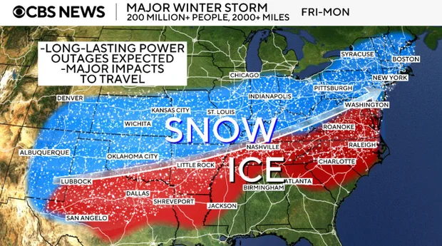 Mais de metade da população do país está no caminho de uma grande tempestade de invernocom previsão de que algumas regiões vejam mais de trinta centímetros de neve – mas o acúmulo de gelo pode causar problemas ainda maiores.