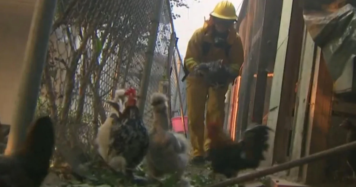 One year after the devastating L.A. wildfires, CBS Los Angeles’ Jasmine Viel remembers when she and her photographer rushed in to help a woman desperate to save her pet chickens and ducks as flames closed in on her home.