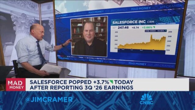 Força de vendas O CEO Marc Benioff apresentou um argumento semelhante, dizendo a Jim Cramer da CNBC em dezembro que “temos todos os dados dos clientes” e que o Agentforce, que automatiza os fluxos de trabalho de vendas e atendimento ao cliente, é “o produto de crescimento mais rápido que já vi na história da Salesforce”.