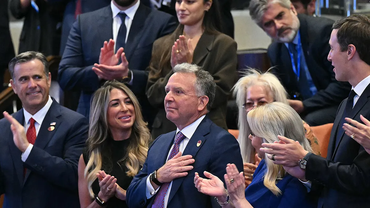 O enviado especial dos EUA para o Oriente Médio, Steve Witkoff, agradece os aplausos dos membros do parlamento israelense, o Knesset, em Jerusalém, em 13 de outubro de 2025. (Saul Loeb/POOL/AFP=by way of Getty Photographs)