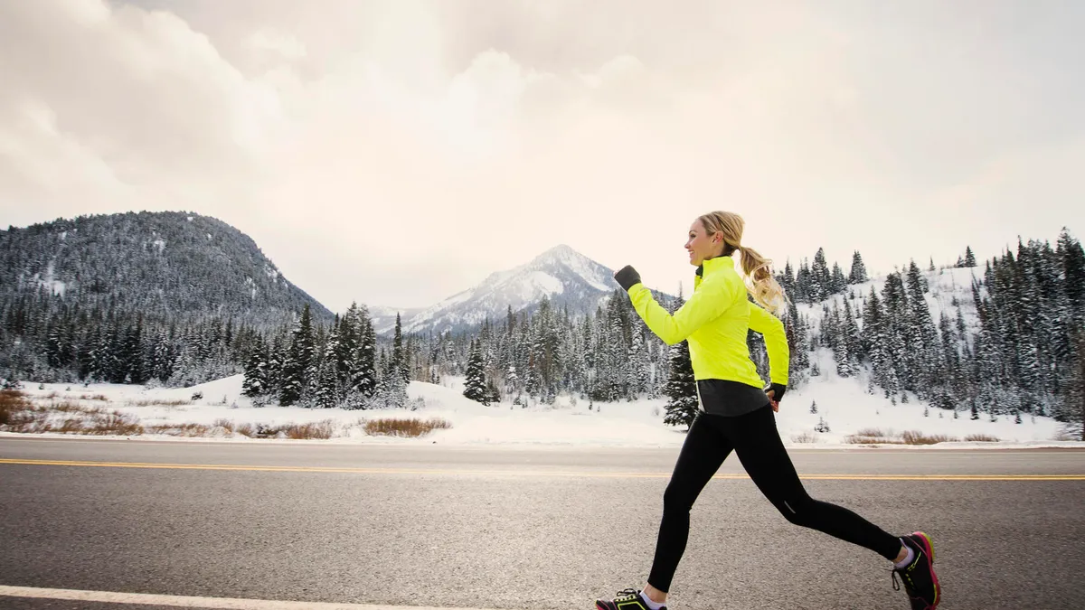 Use cores vivas ao praticar exercícios ao ar livre no inverno e, melhor ainda, considere um colete refletivo para segurança further.