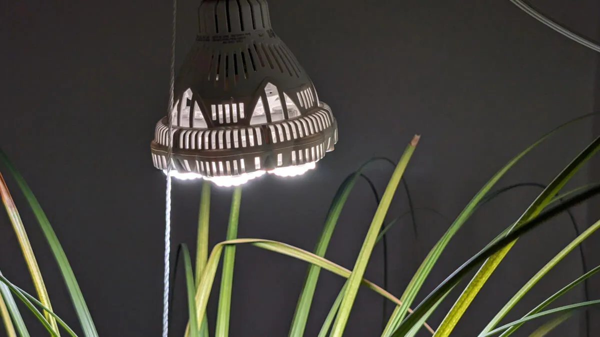 Eu usei um Sansi cultiva lâmpada (equivalente a 400 watts) por mais de dois anos para fornecer bastante luz brilhante para minha grande palma de rabo de cavalo. Isso significa que posso mantê-lo fora do alcance do meu gato, que adora comer as folhas. Também ajuda a complementar as árvores cítricas do meu pátio que passam o inverno perto da porta da frente.