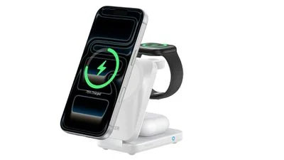 A estação de carregamento sem fio Anker Prime de US$ 150 oferece carregamento rápido Qi2 de 25 W para modelos de iPhone compatíveis, correspondendo às velocidades fornecidas por meio do MagSafe. Ele pode carregar um iPhone 17 a 80% em 55 minutos. Há um sistema de resfriamento de fluxo de ar incluído que visa manter as temperaturas baixas para tornar o carregamento mais eficiente, e o carregador tem um design dobrável para viagens. É capaz de carregar um iPhone, Apple Watch e AirPods.